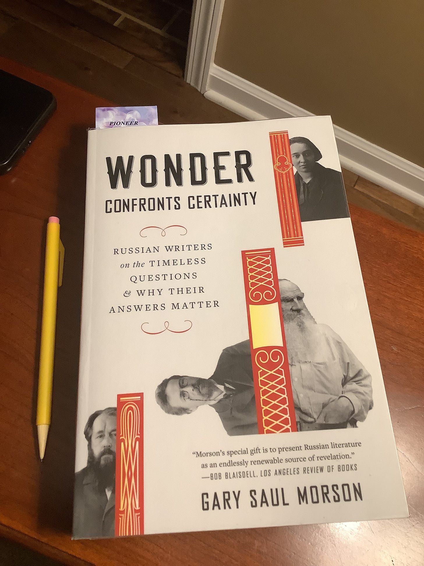 I spent a large part of it with Gary Saul Morson’s nearly 500-page tome, Wonder Confronts Certainty: Russian Writers on the Timeless Questions & Why Their Answers Matter (Belknap, 2023).